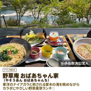 岐阜県飛騨市より約130年前から現存する古民家を移築、古民家の雰囲気を楽しみながら大自然と曽木の滝を借景に野草料理、野草茶、甘味等を楽しめる身体と心にやさしい野草薬草カフェ🍃