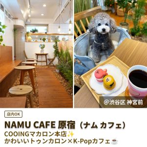 カフェの名前のNAMU(韓国語で木の意味)の通り、観葉植物がたくさん置いてあったり、床は木くずで覆われていたりナチュラルな韓国っぽカフェ☕