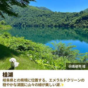 晴れた日のエメラルドグリーンの湖と緑の山々は本当に綺麗です✨