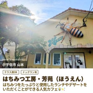 宇佐インターからすぐ近くで、ハチミツを利用した料理が食べられます🍯メニューが豊富でどれも美味しそうで悩みます!スイーツもハチミツたっぷり!
