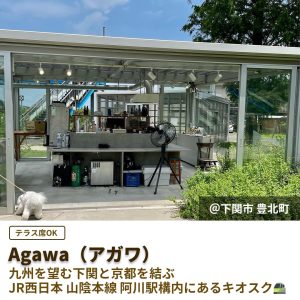 無人駅・阿川駅敷地内に、駅周辺や山陰本線沿線の食材を用いた飲食スペース、地元のおみやげを扱う物販スペース、風土を馳けるレンタサイクルなど、阿川という土地の魅力や山陰の連なりを体感していただけるコンテンツを展開する土地の魅力を発信する商業施設✨