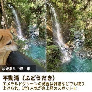 付知峡という美しい峡谷✨水の透明度が非常に高く、下流の付知川は鮎釣りの名所🐟