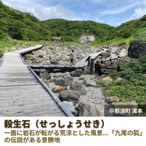 辺りには硫黄の匂いが立ち込め、独特の雰囲気を醸し出しています。整備された遊歩道は那須高原展望台まで続き、那須湯本温泉からもほど近くの場所にあるので、温泉街に泊まる方の立ち寄りスポット✨