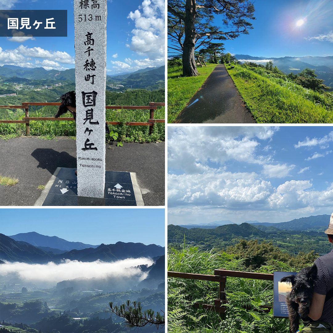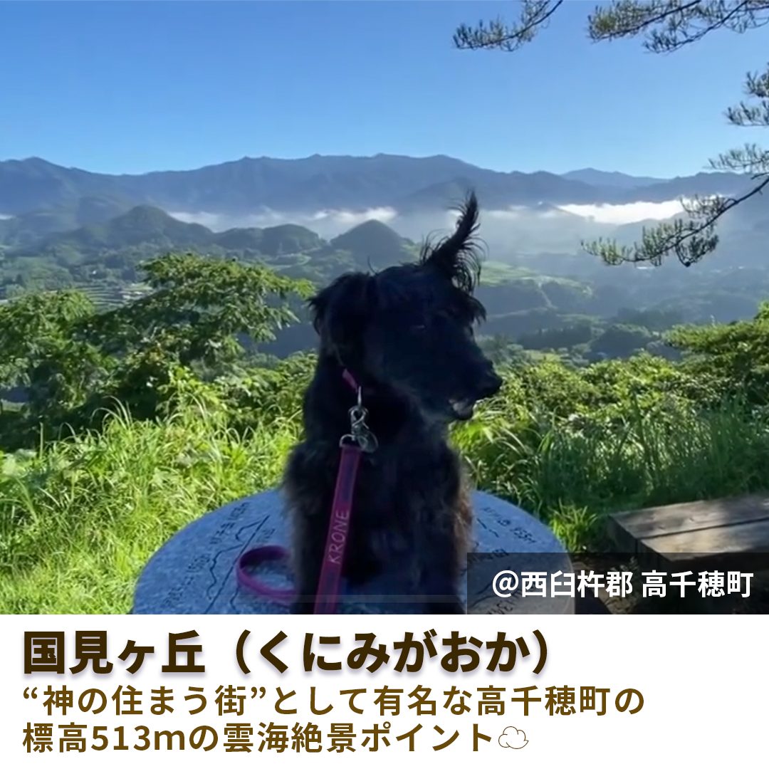 標高513mにある展望台で、東側には高千穂の山々や町並み、棚田の風景が広がっていて西から南北にかけては阿蘇山や祖母連山、二上山など九州を代表する山々が広がる✨