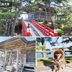 弁天堂や、日本三景の島々を望める見晴らし台、プライベートビーチのような小さな浜辺があり30~40分で島内を一周できるため、気軽に島散策できる🐶🐾