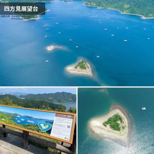 島のハート型は上空からしか確認できないが、展望台の案内板にあるQRコードから空撮の動画が見れる♪