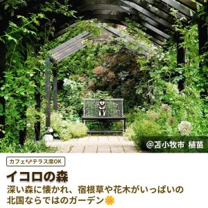 野鳥やエゾリスが訪れ、ゆったりとした時間を過ごせるカフェテラスや、最新の園芸品種や珍しいを購入できるガーデンセンターも併設✨